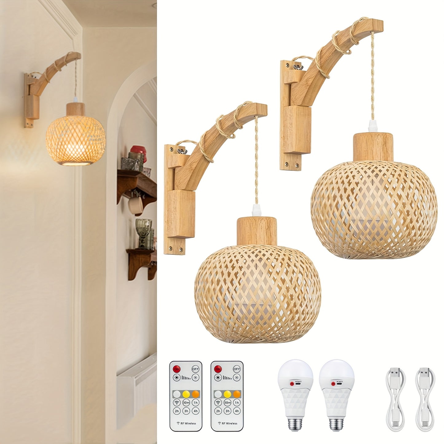 Add Boho Battery Operated Wall Sconces, Rattan Wall Sconce Set Of 2 with Remote, RGB 15 Colors Dimmable Rechargeable Wall Light, Black Indoor Wireless Wall Lamp, Farmhouse Rattan Wall Lighting for Bedroom Living Room Hallway to the cart