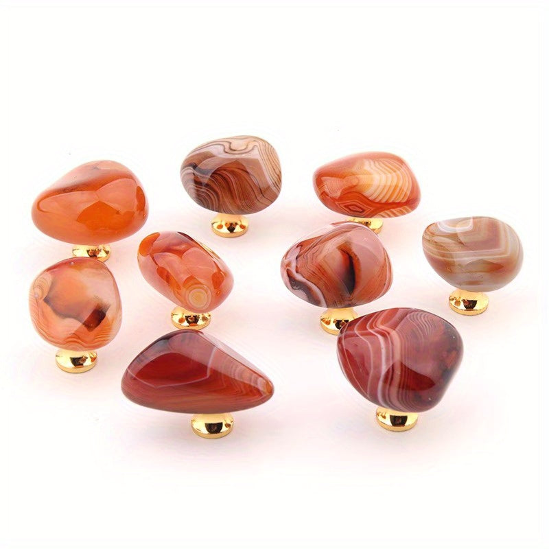 Add 6pcs Luxury Natural Silk Agate Drawer Pulls, Single Hole Stone Handles for Closet Door Jewelry Box, 25-35mm Diameter, Vintage Drawer Pulls to the cart