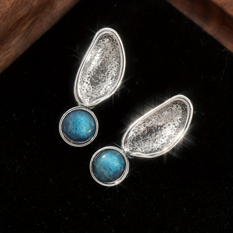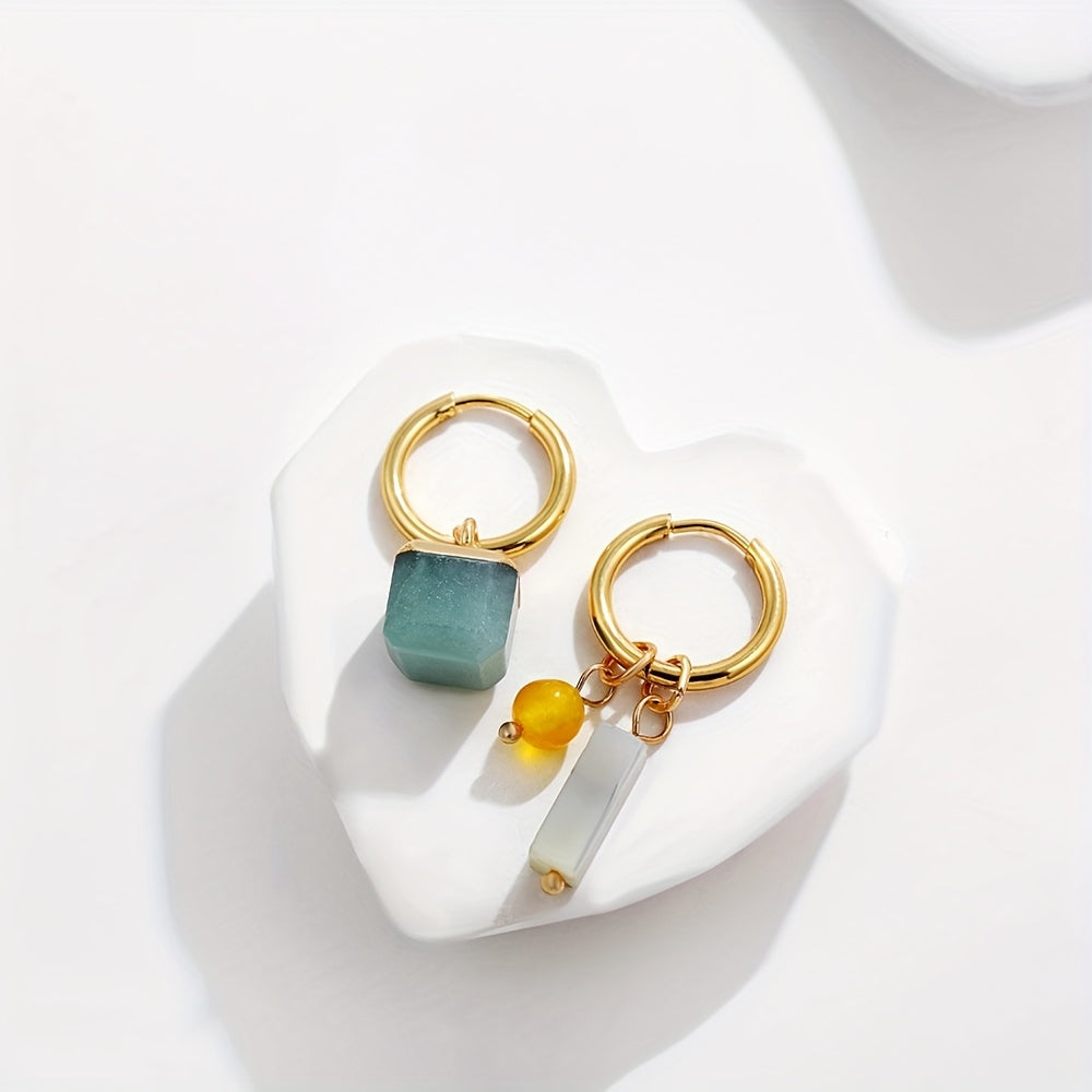 Add 1 Pair 18K Golden Plated Stainless Steel Hoop Earrings with Natural Asymmetrical Gemstones, Boho Vacation Style, Daily & Holiday Wear, All-Season Accessory to the cart