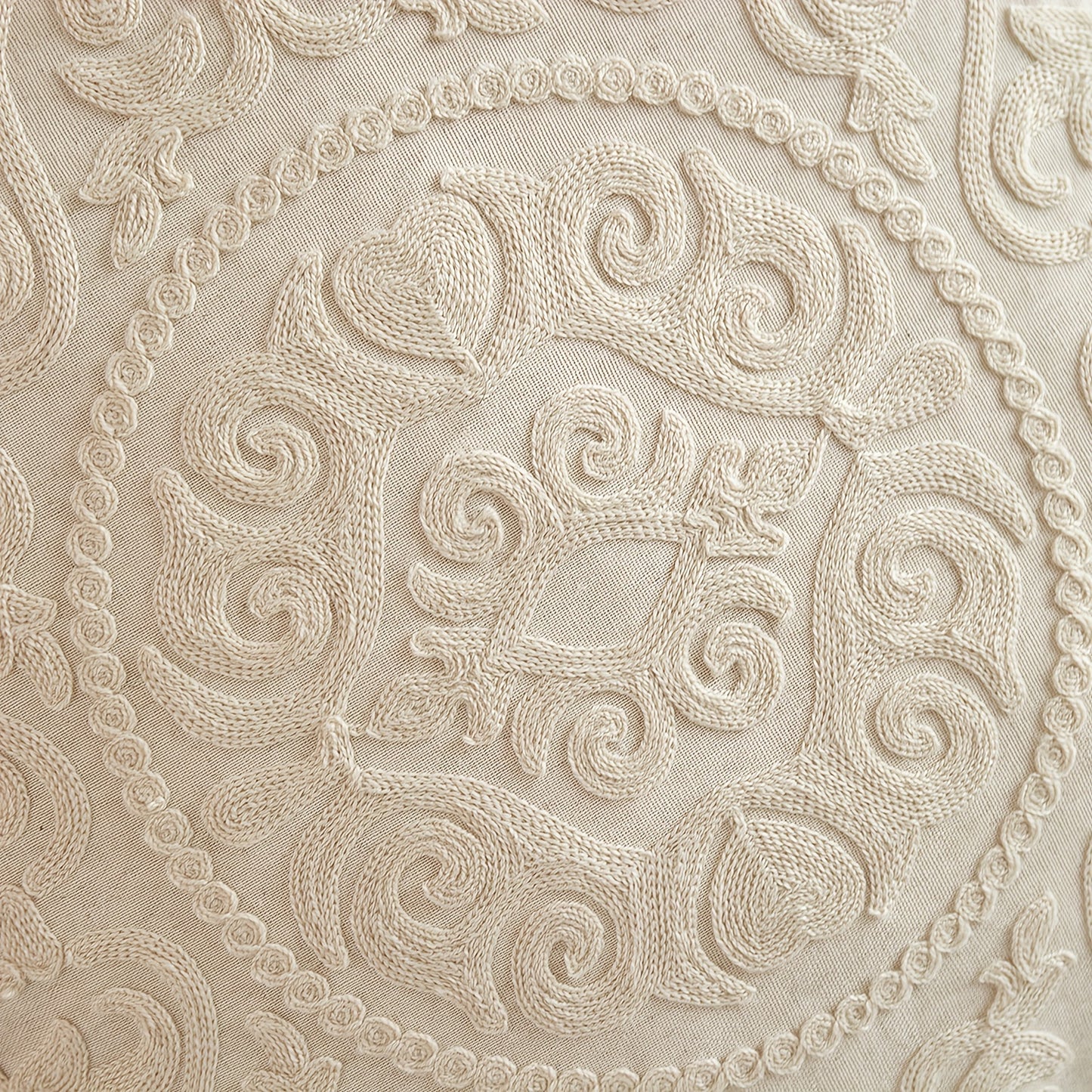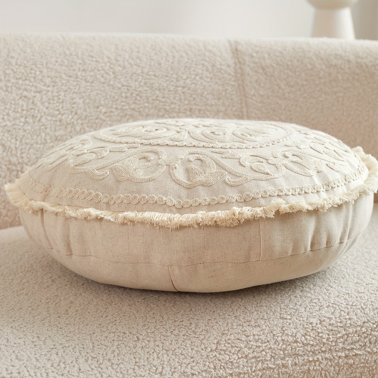 Add 1pc, natural linen blended round pillowcase, medallion pillowcase with fringe decoration, single side tufted embroidery, D16.9inch, suitable for sofa, living room, bedroom home decoration, no pillow core to the cart