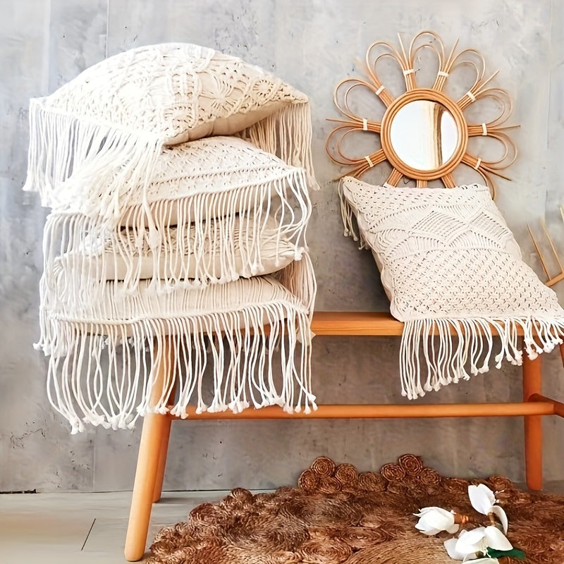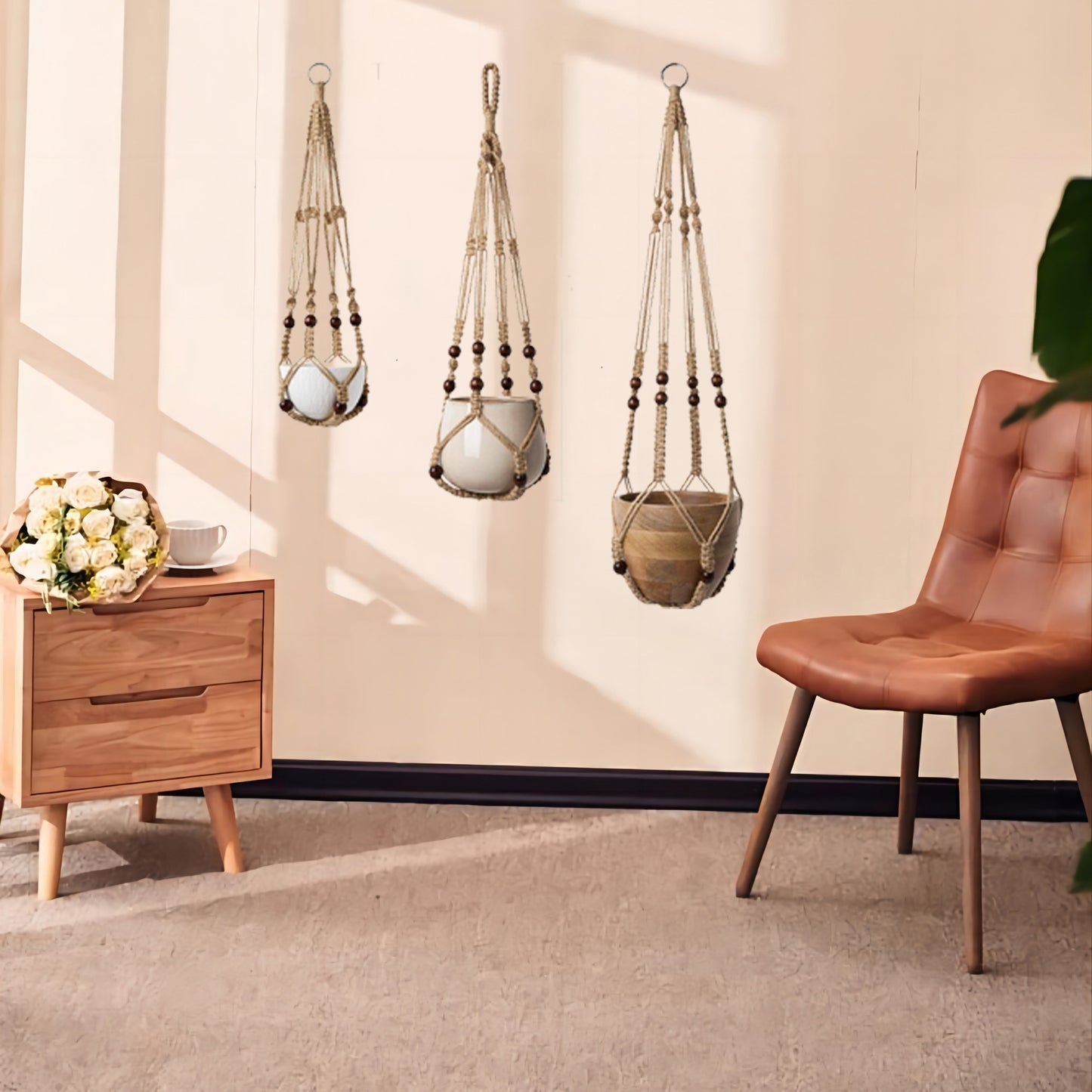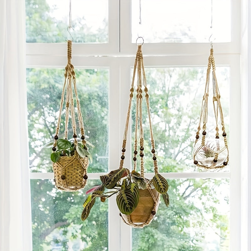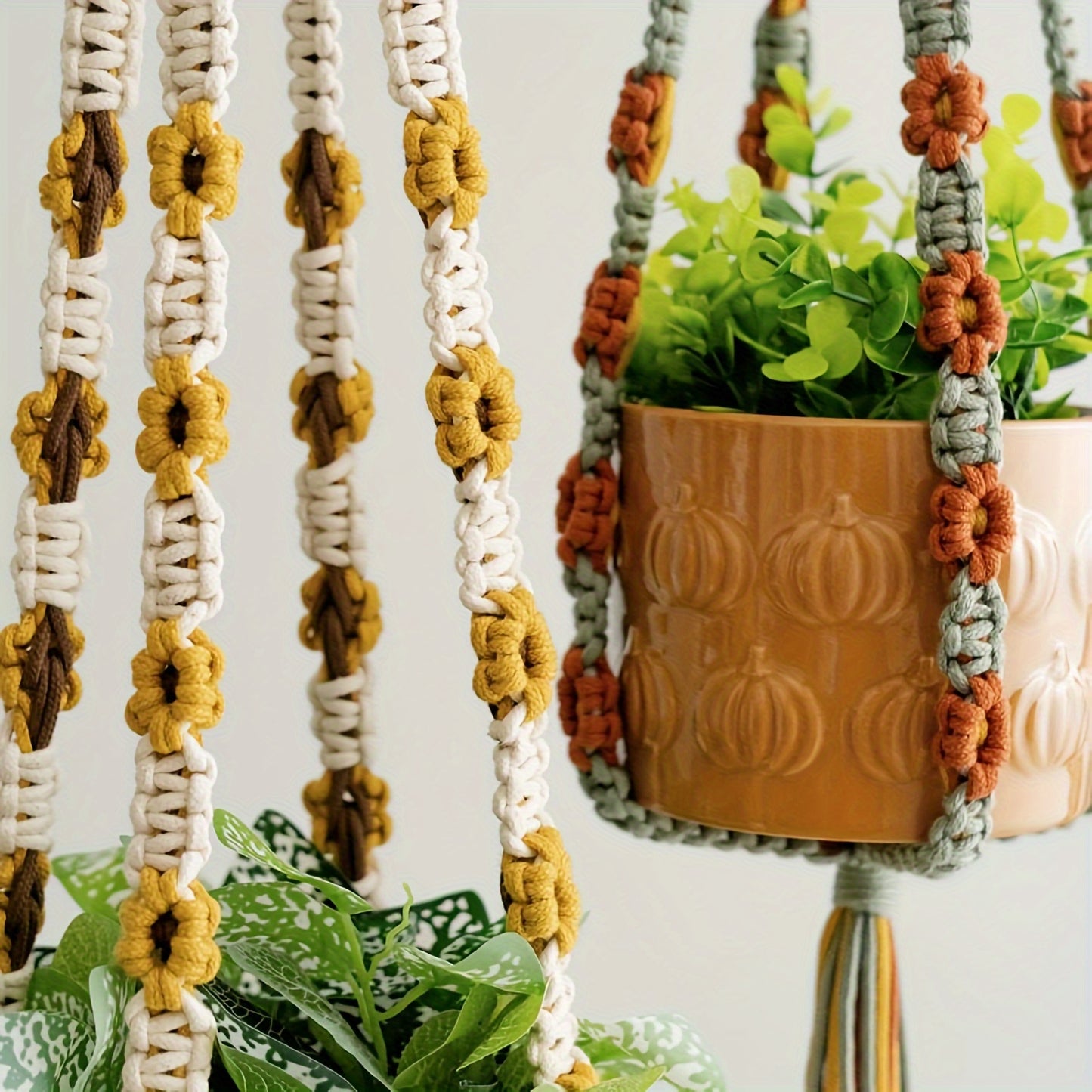 Add Boho Chic 2-Tier Wall-Mounted Plant Stand with Tassels - Lightweight, Handcrafted Rope Hanging Decor for Indoor/Outdoor Use - White Striped Design for Bonsai & Plants, Plant Decor, Boho Chic Style, Rustic Charm, Boho Decor, B to the cart