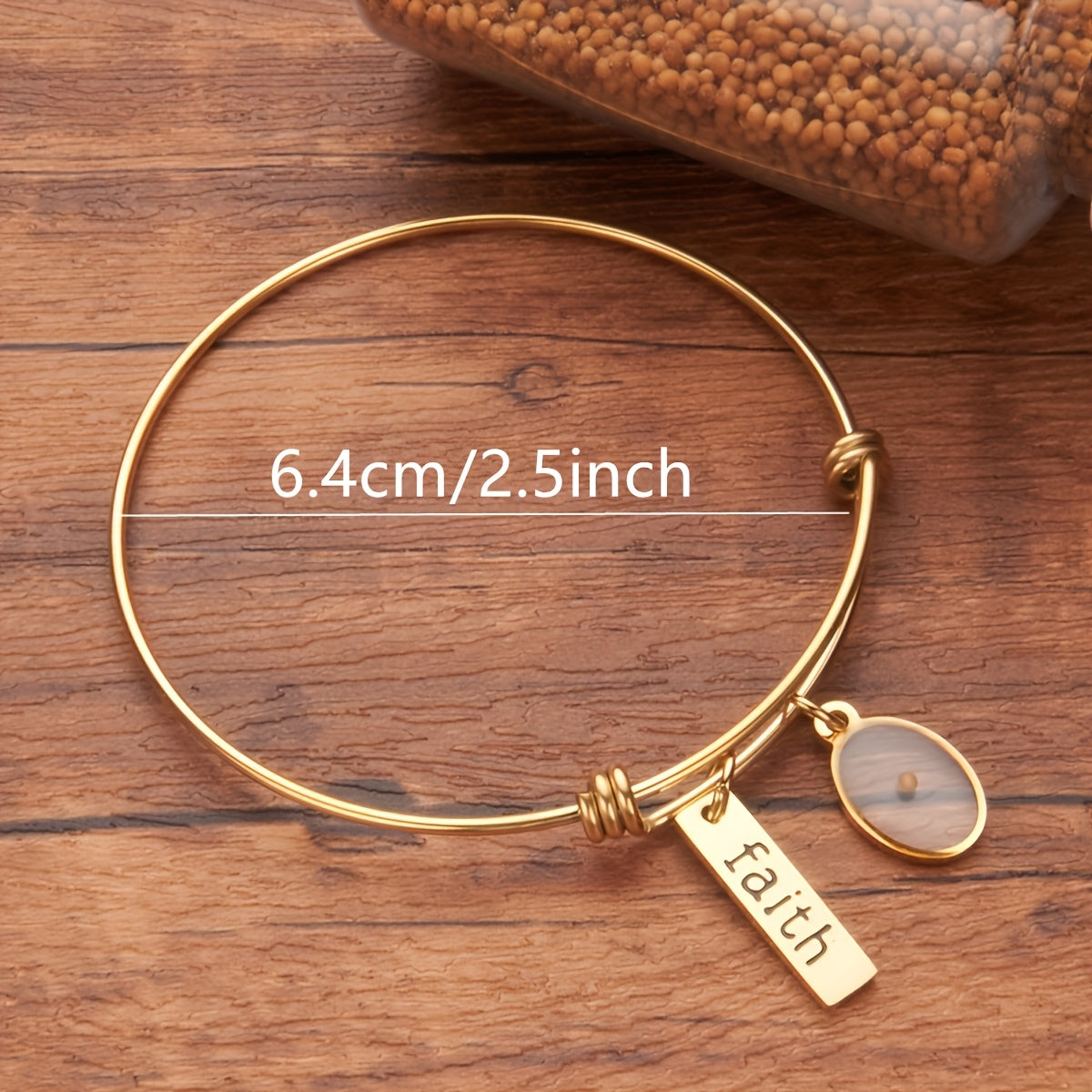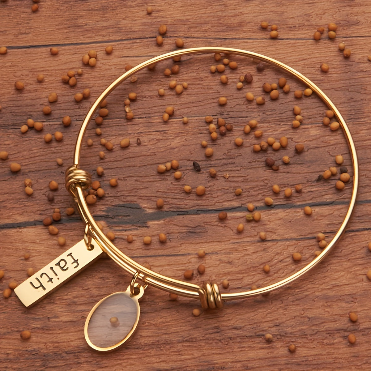 Add [Adjustable Faith Over Fear Bangle] Elegant Rose Golden "Faith Over Fear" Inspirational Bangle Bracelet - Adjustable Stainless Steel with Mustard Seed Charm, Perfect for Daily Wear to the cart