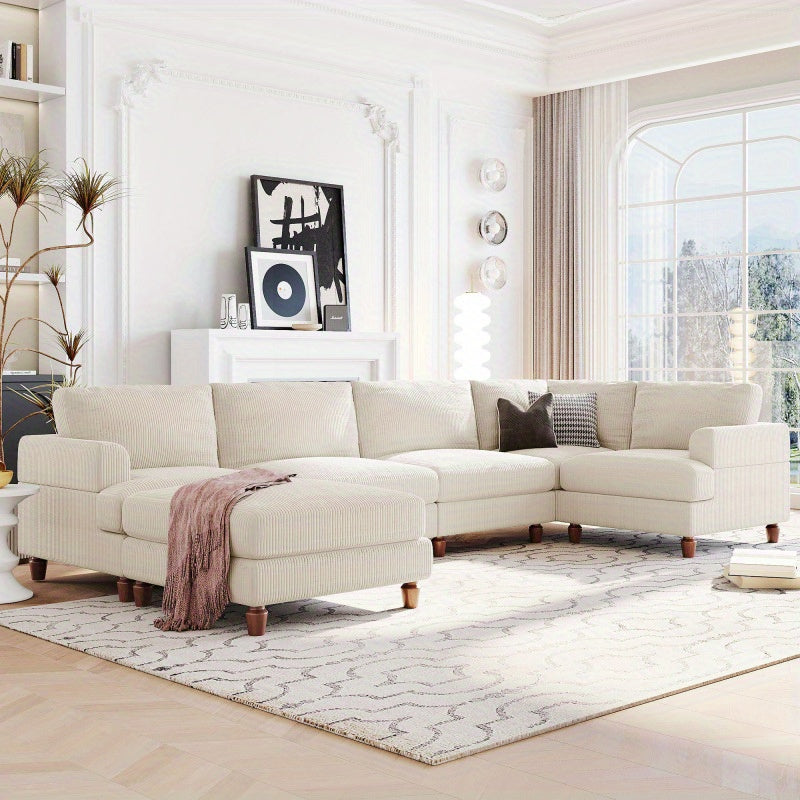 Add U-Style Modular Sectional Sofa with Ottoman - L-Shaped Corner Sofa for Living Room & Office, Spacious Beige Fabric with Wooden Legs, Elegant Home Decor, Sectional Sofa for Living Room, Office Relaxation, Bohemian Style, Plush to the cart