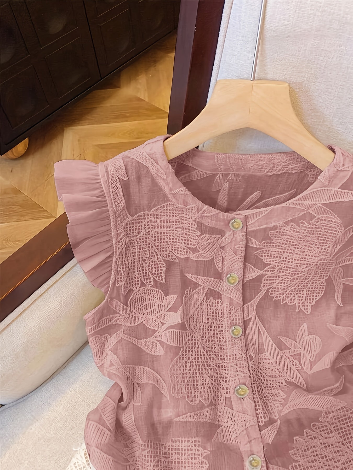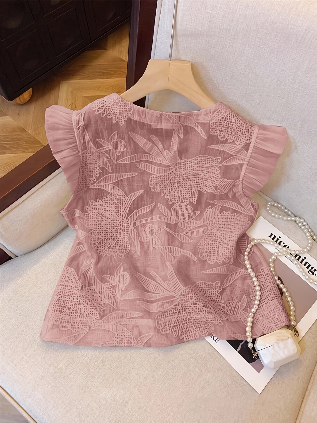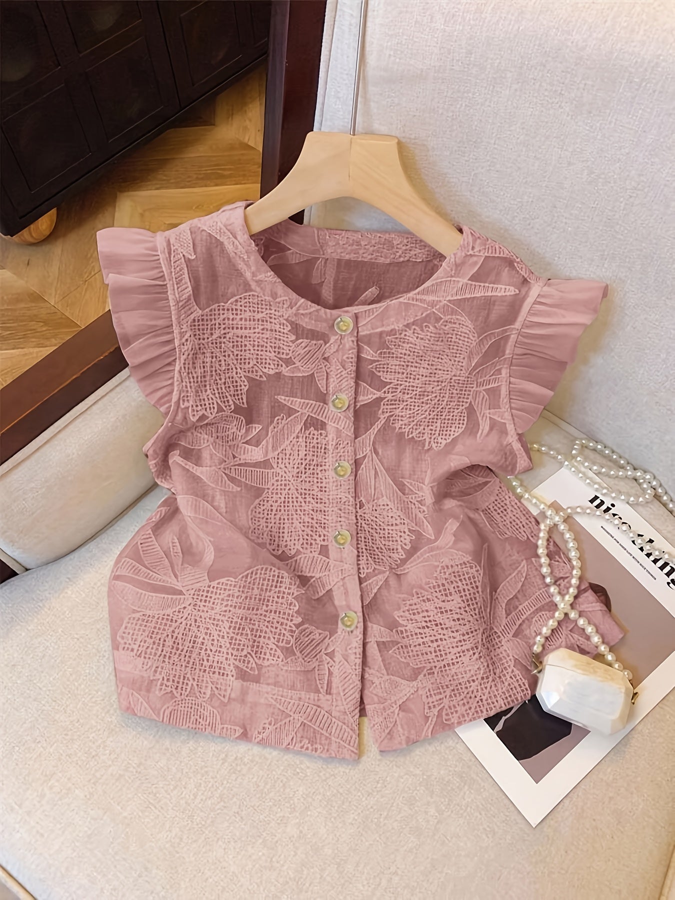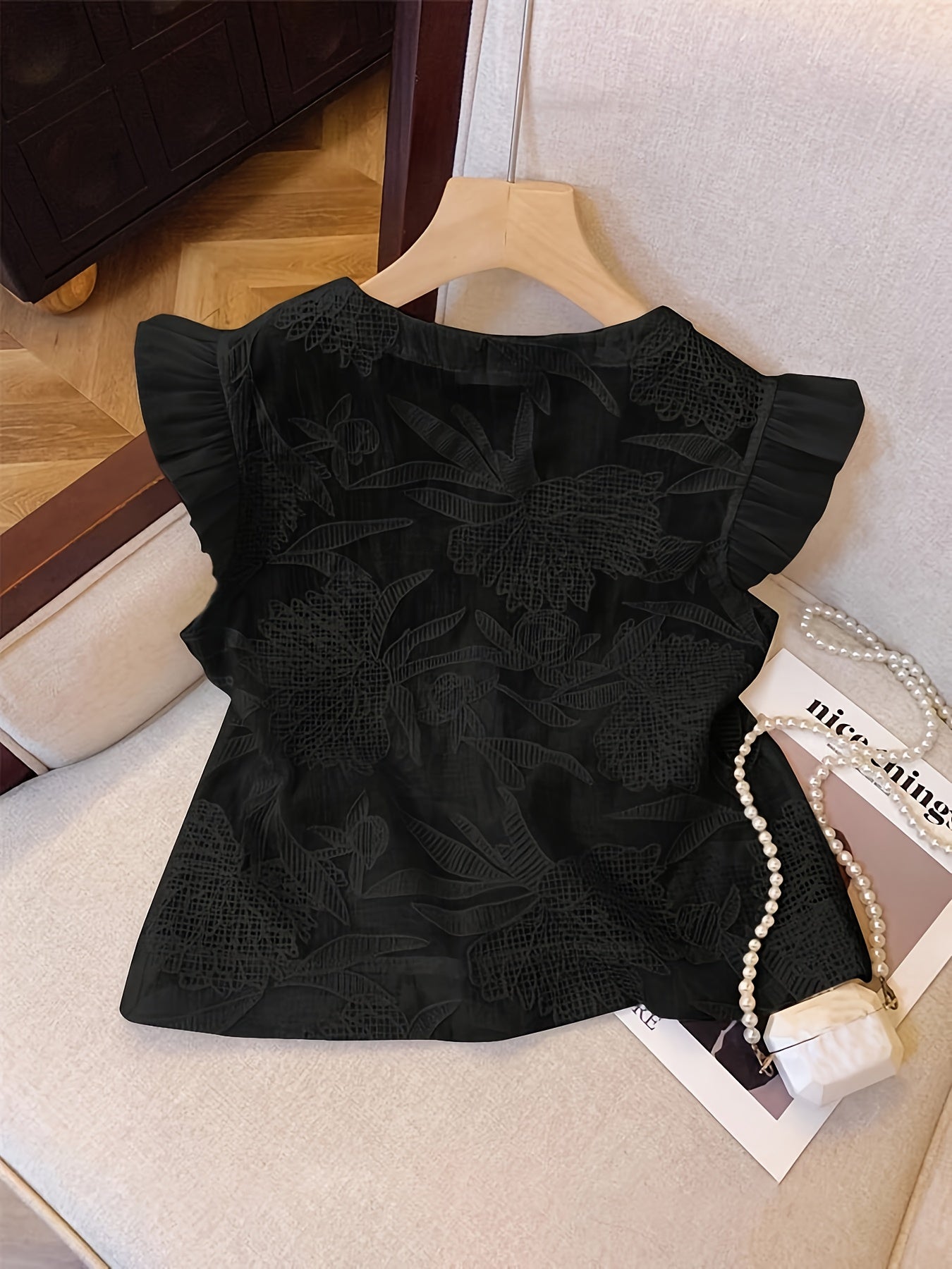 [French-Inspired Lace Blouse] Chic White French-Inspired Lace Blouse with Puff Sleeves & Button Front - Perfect for Spring/Summer/Fall, Casual to Formal Wear